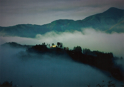 和歌山県熊野町川九重村の上流、奈良県十津川村南端にあたる、霊峰玉置山。