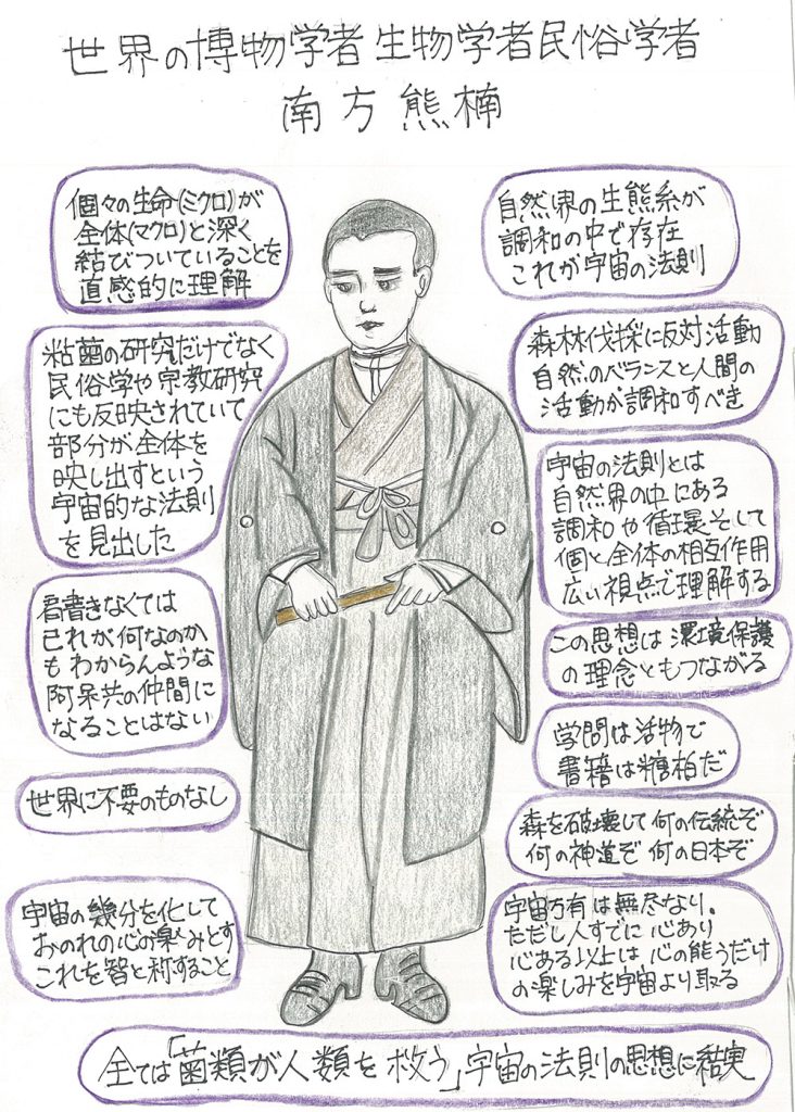 - 南方熊楠:彼の生態学的な視点や粘菌研究に触れ、「すべてが繋がっている」という宇宙観を理解する。