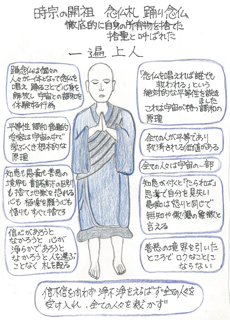 - 一遍上人:念仏や踊りを通じて悟りを求める方法を学び、行動と祈りを融合させる体験をする。