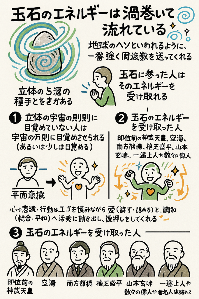 これによって、玉石が「地球のエネルギーの軸」として考えられるイメージが分かりやすくなります。
