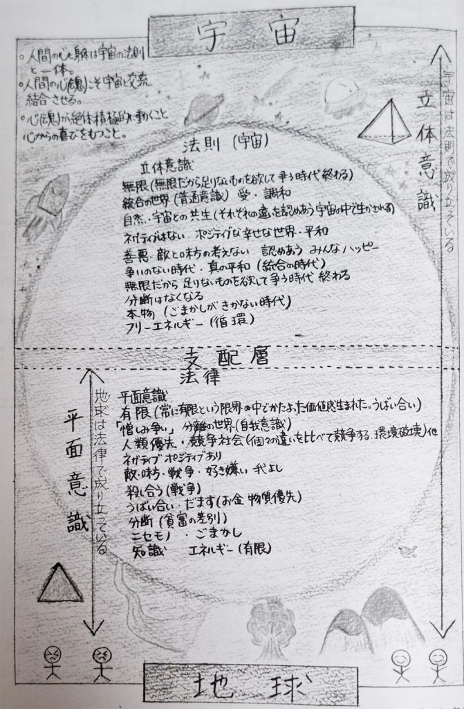 私たち人間は地球的な「平面高識」を持ちながらも、宇宙的な「立体高識」とつながる可能性を秘めた存在なのです。